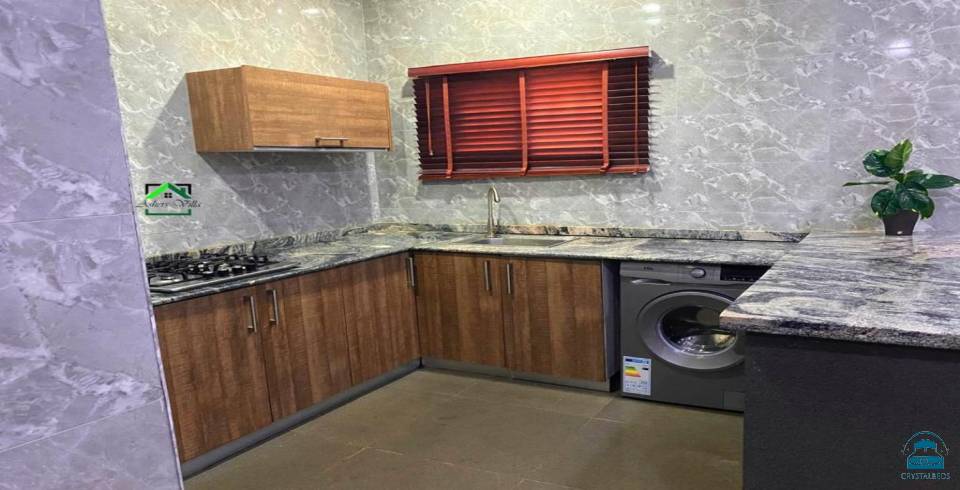offers two bedrooms and three bathrooms. The apartment includes a spacious living room and a fully equipped kitchen.