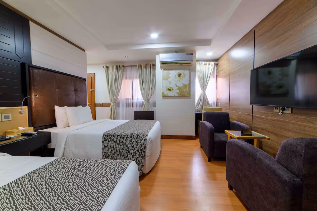 , and concierge services. Perfect for business executives or families near Jabi Lake, Silverbird Cinema, and bustling Utako Market, Alphaplus offers upscale comfort amid Abuja’s energetic pulse, ensuring a seamless blend of work, play, and tranquility.