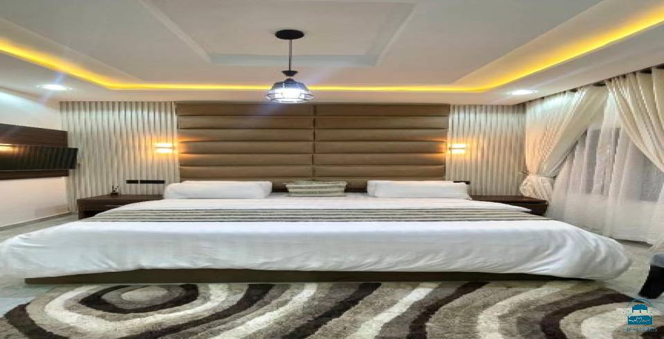 The 2 Bedroom Luxury Smart Home Apartment in Abuja offers a spacious layout with two bedrooms and two bathrooms. The apartment includes a living room, family rooms, and a fully equipped kitchen.