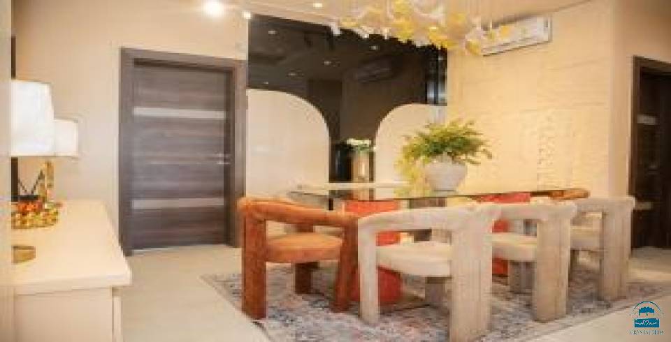 Vanity Luxury Apartment Ikoyi in Lagos offers a spacious apartment with one bedroom and three bathrooms. The living room features a sofa bed and a dining area with a table.