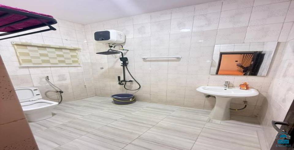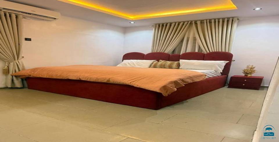 Apartment in Abuja offers a spacious layout with one bedroom, three bathrooms, and a comfortable living room. The apartment includes a balcony with city views, ensuring a pleasant stay.