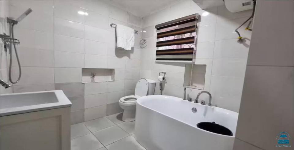 spacious apartment with one bedroom, two bathrooms, and a comfortable living room. The property includes air-conditioning, a hot tub, washing machine, fully equipped kitchen, and TV.