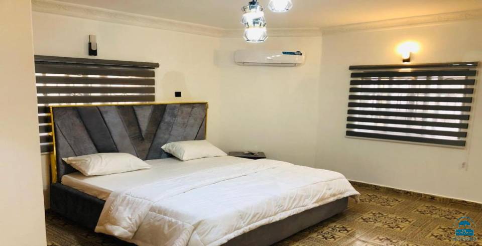 two bedrooms, two bathrooms, and a spacious living room. Each apartment includes air-conditioning, a fully equipped kitchen, and a TV, ensuring a pleasant stay.