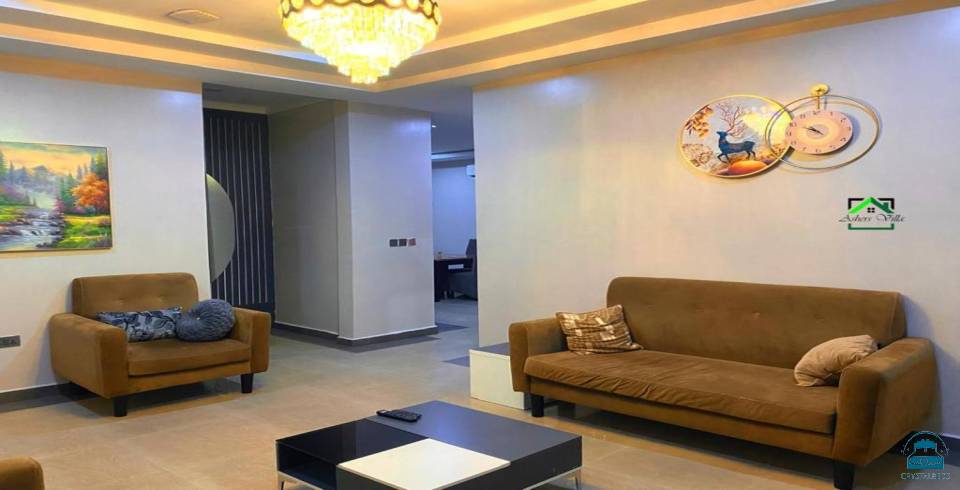 offers two bedrooms and three bathrooms. The apartment includes a spacious living room and a fully equipped kitchen.